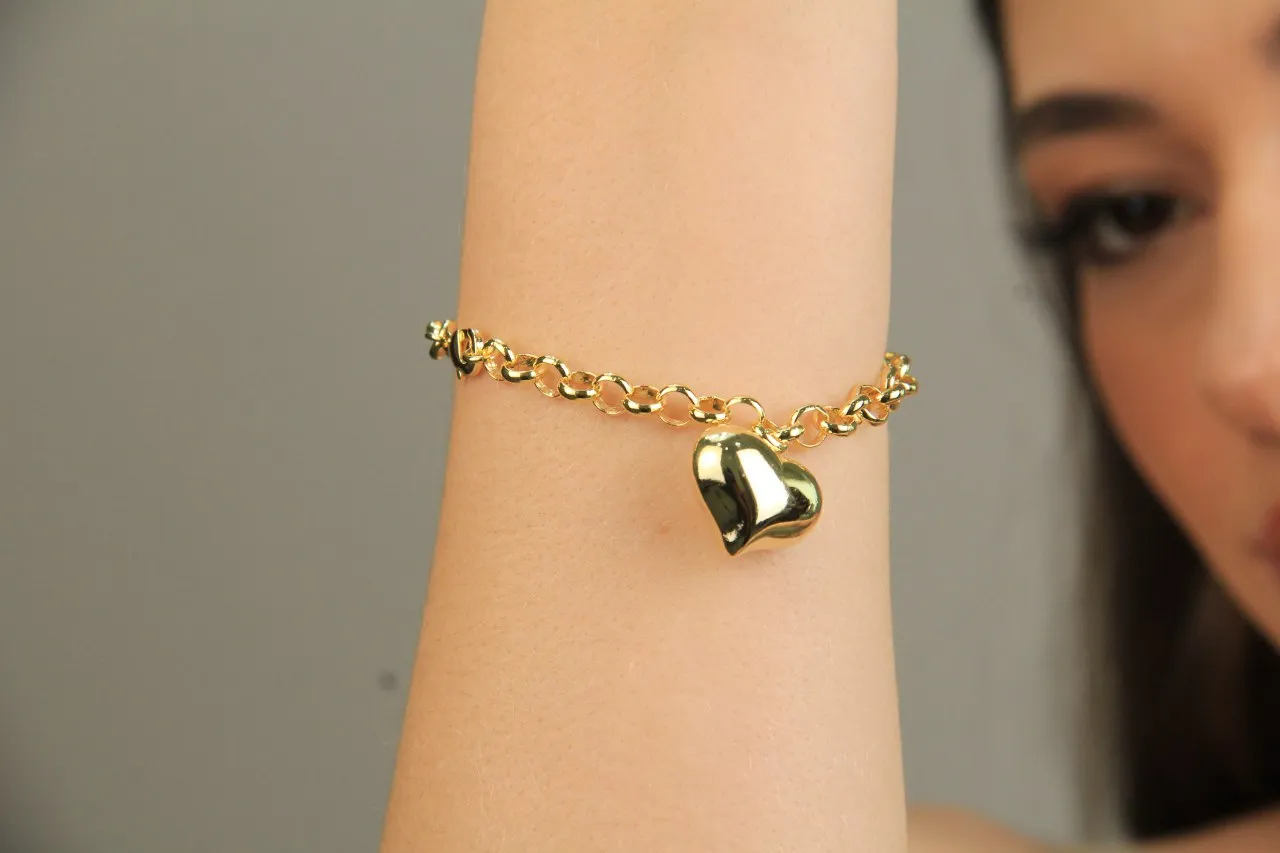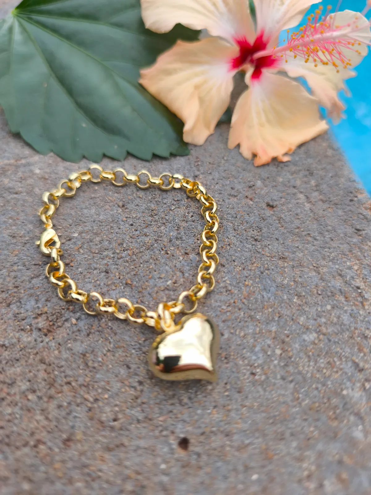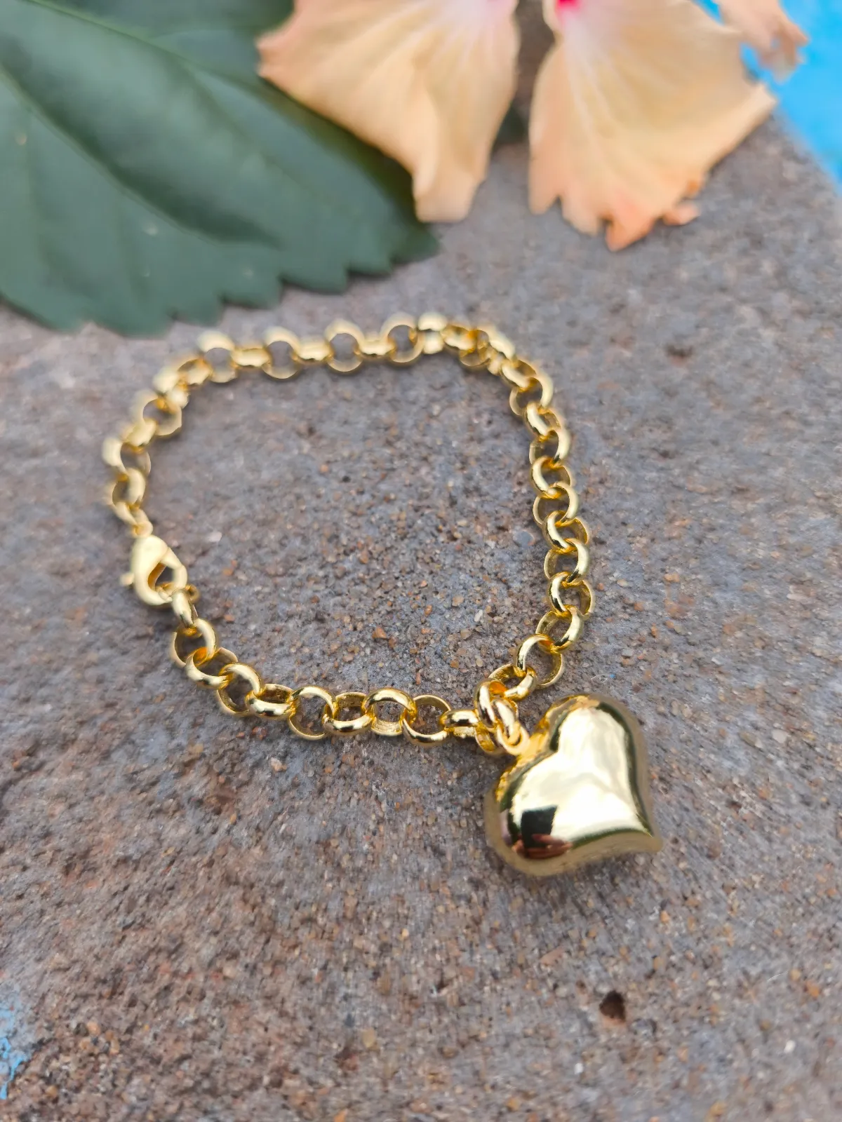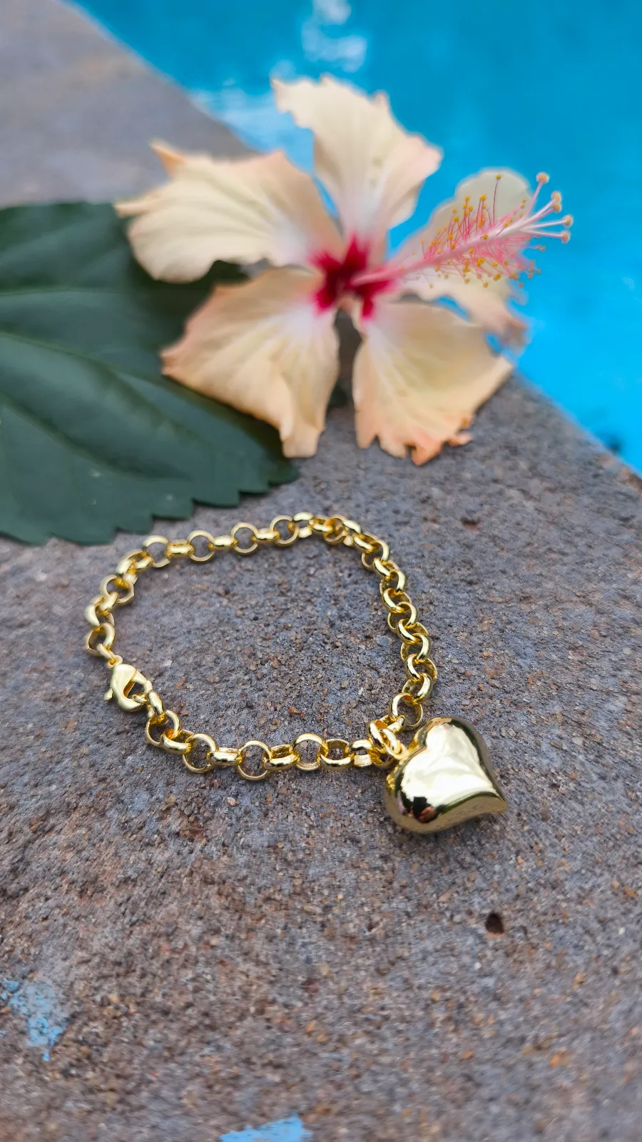 Pulseira Elo Portugues com Pingente de Coração Liso