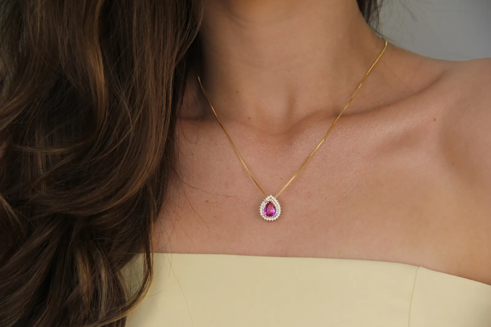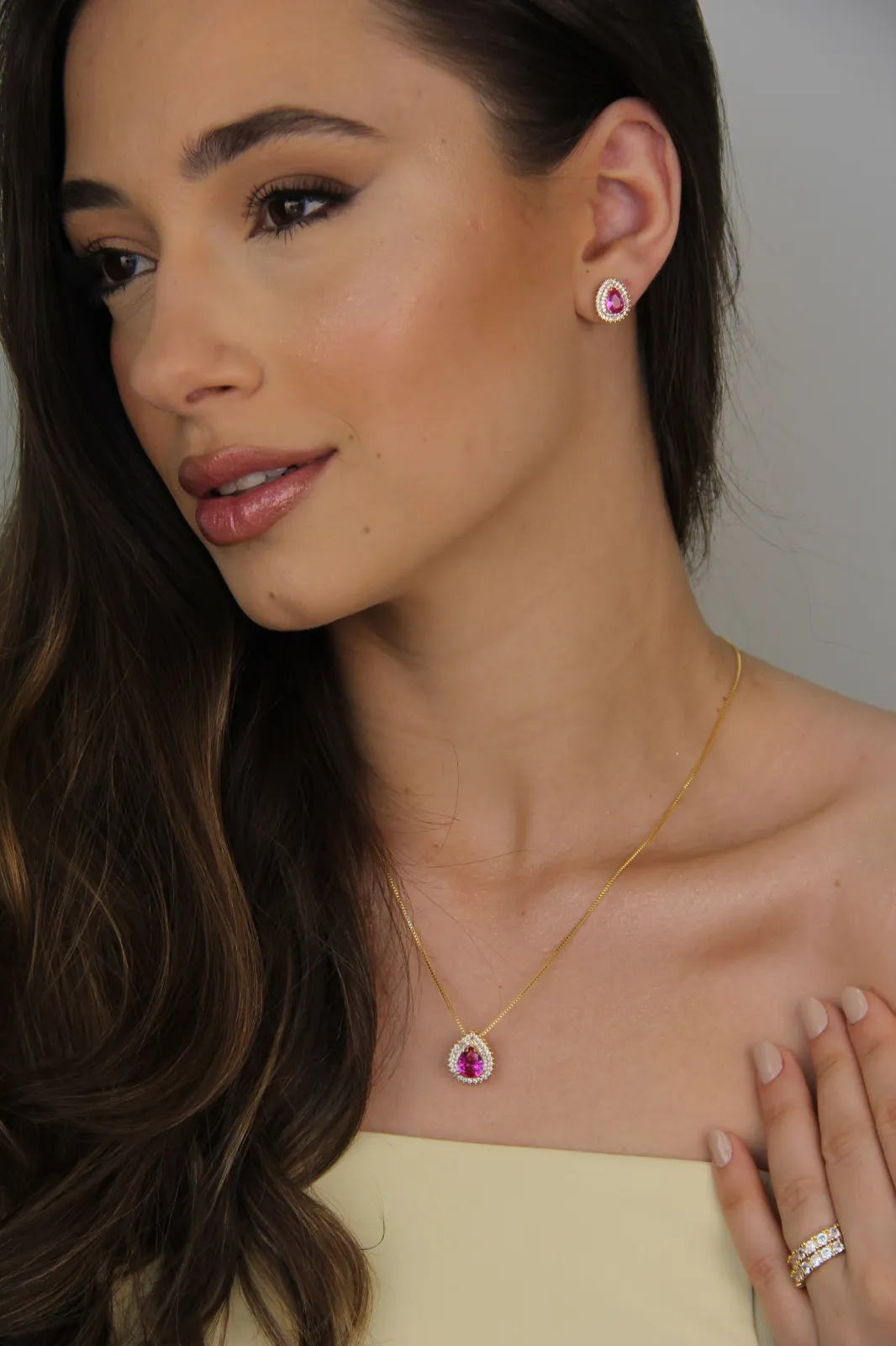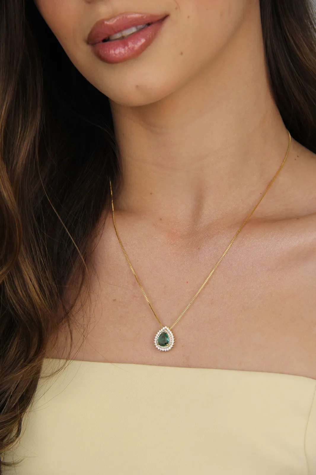 Conjunto Colar e Brinco Gota Cravejada