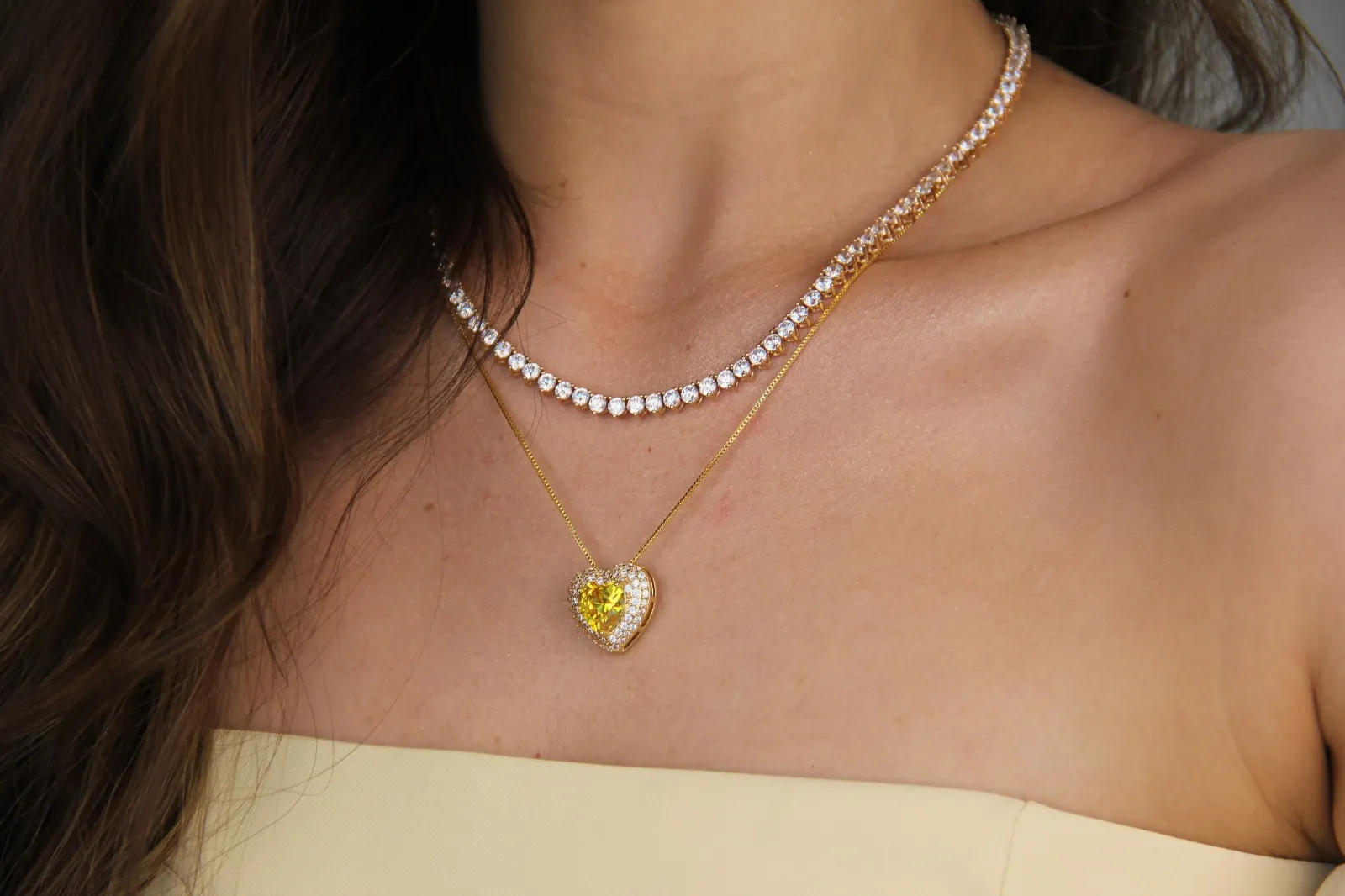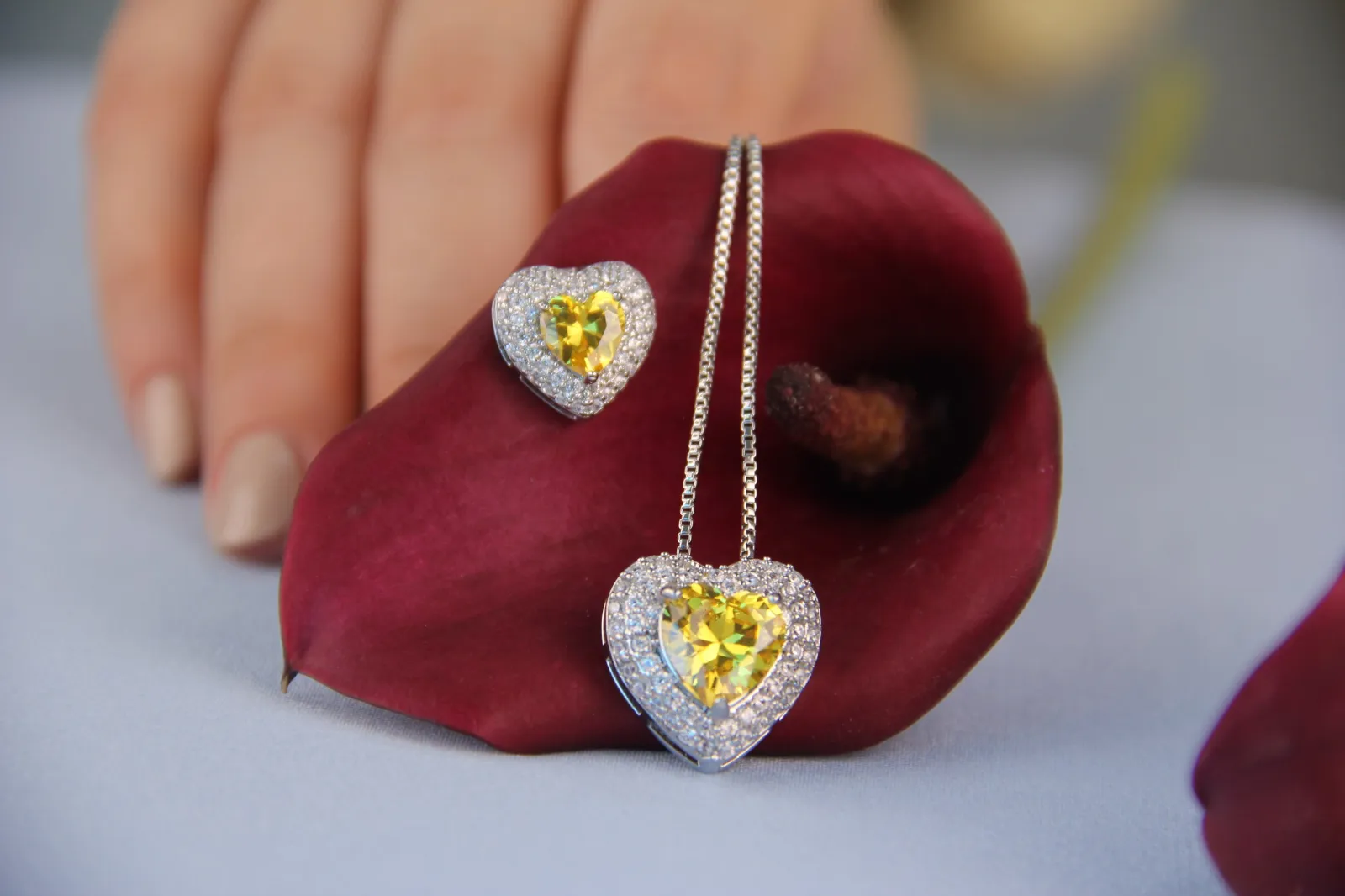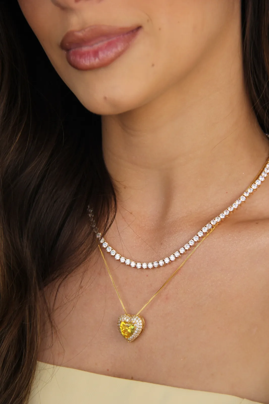 Conjunto Colar e Brinco Coração Cravejado