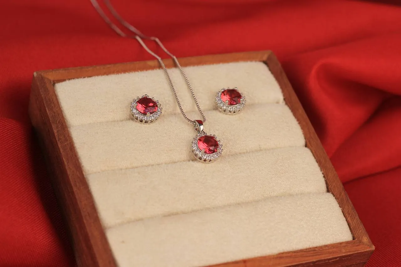 Conjunto Colar e Brinco Redondo Rubi