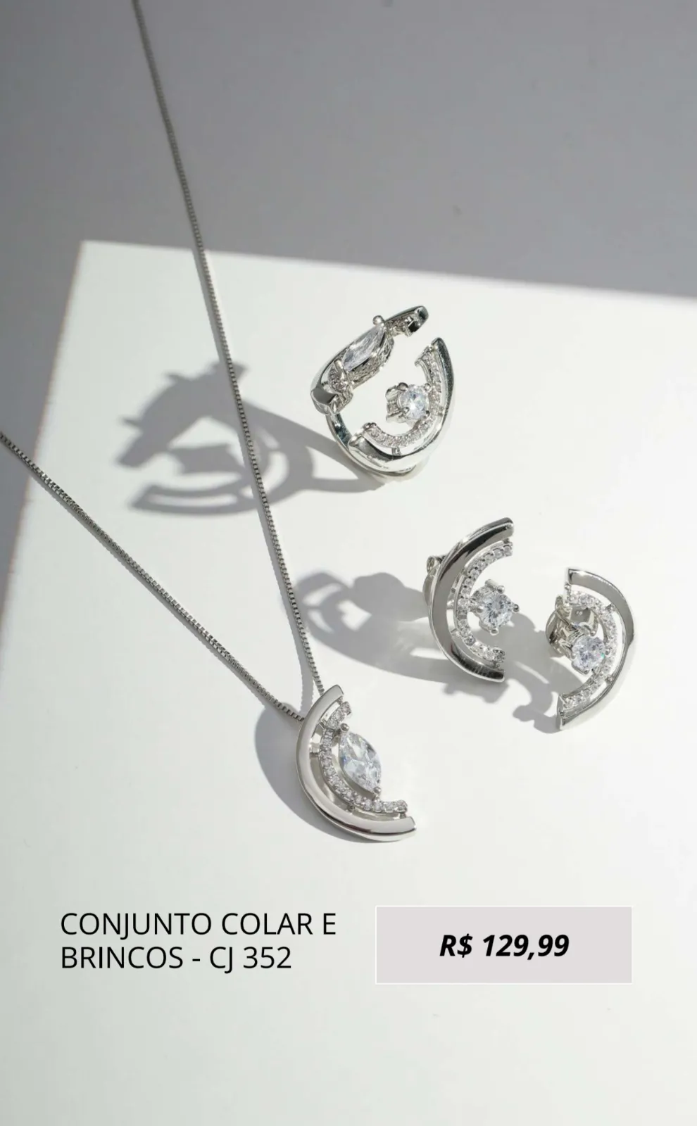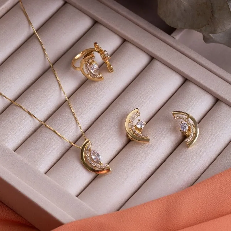 Conjunto Colar e Brinco Meia Lua Cravejado