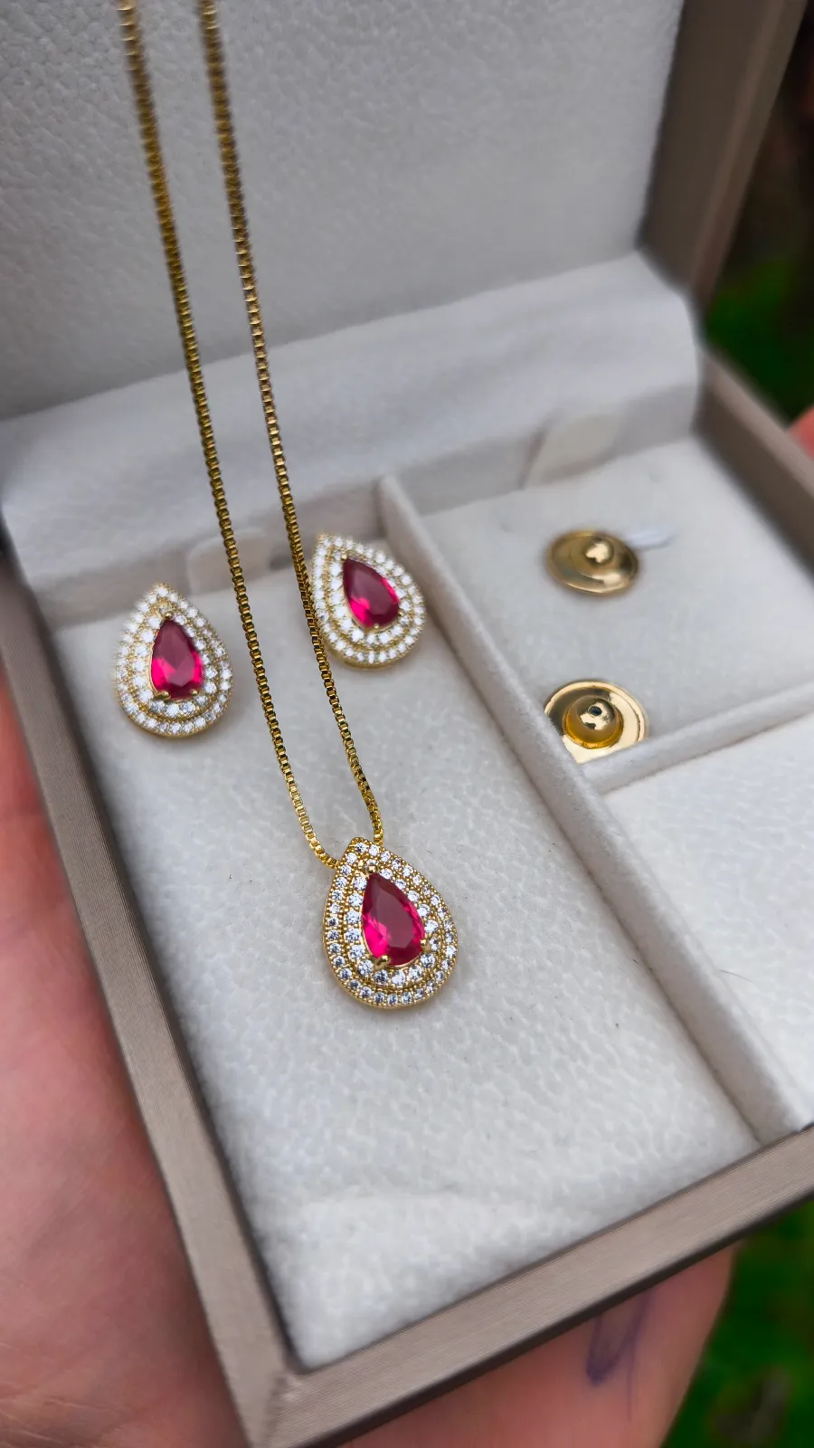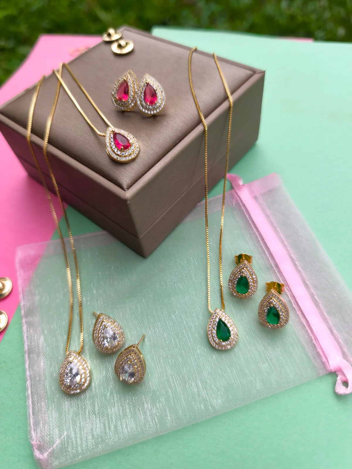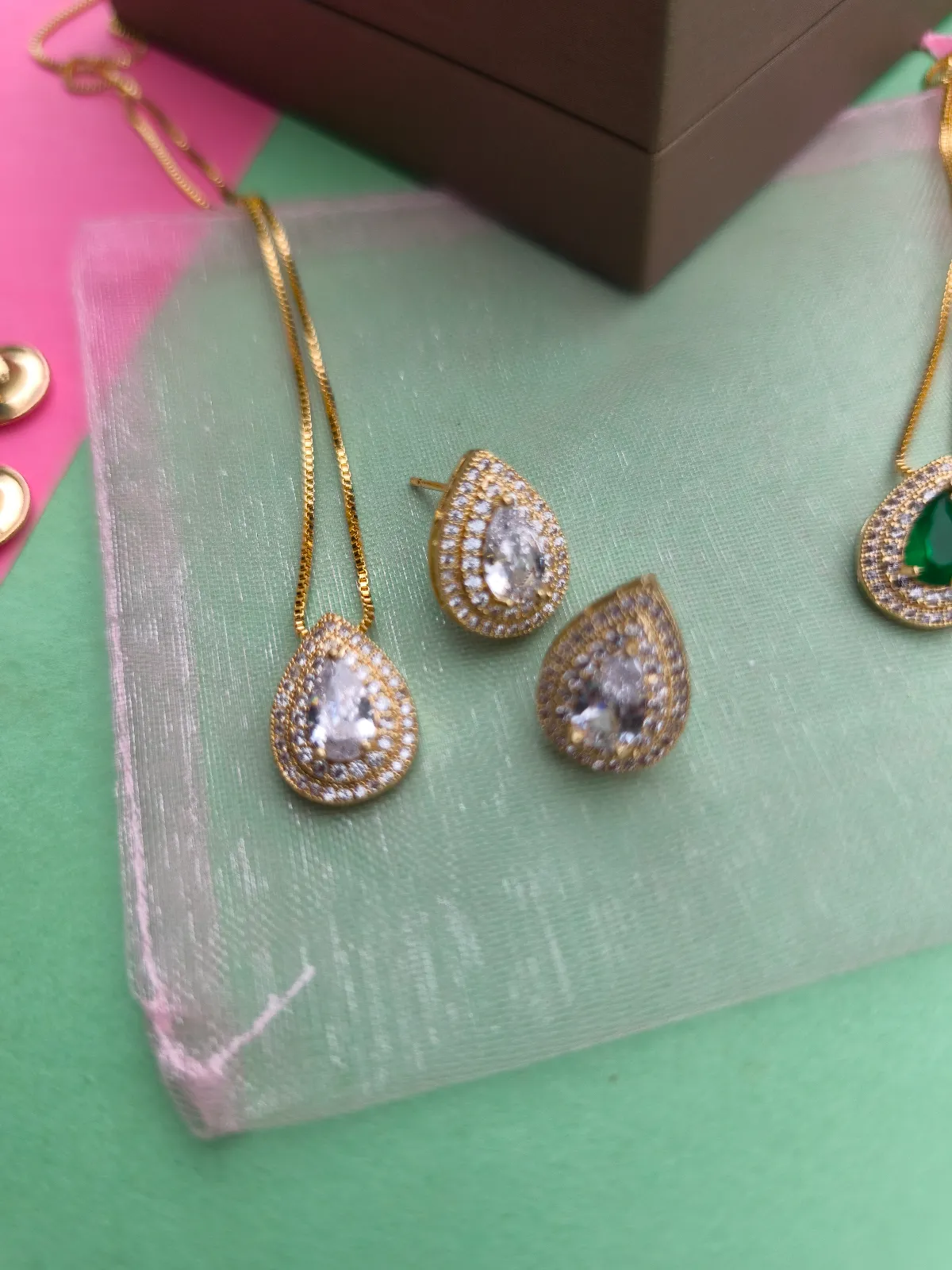 Conjunto Colar e Brinco Gota Cravejada