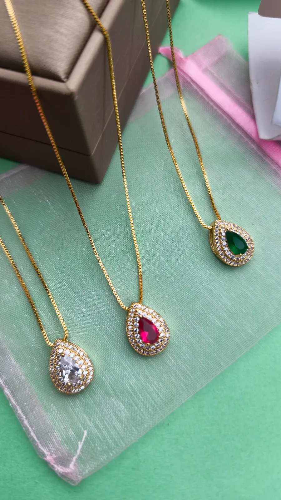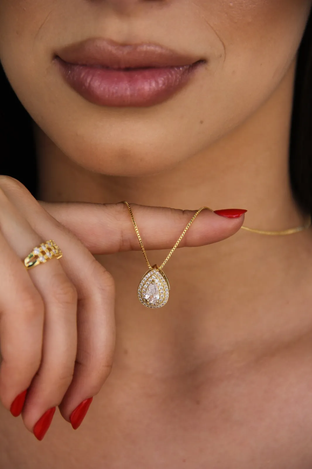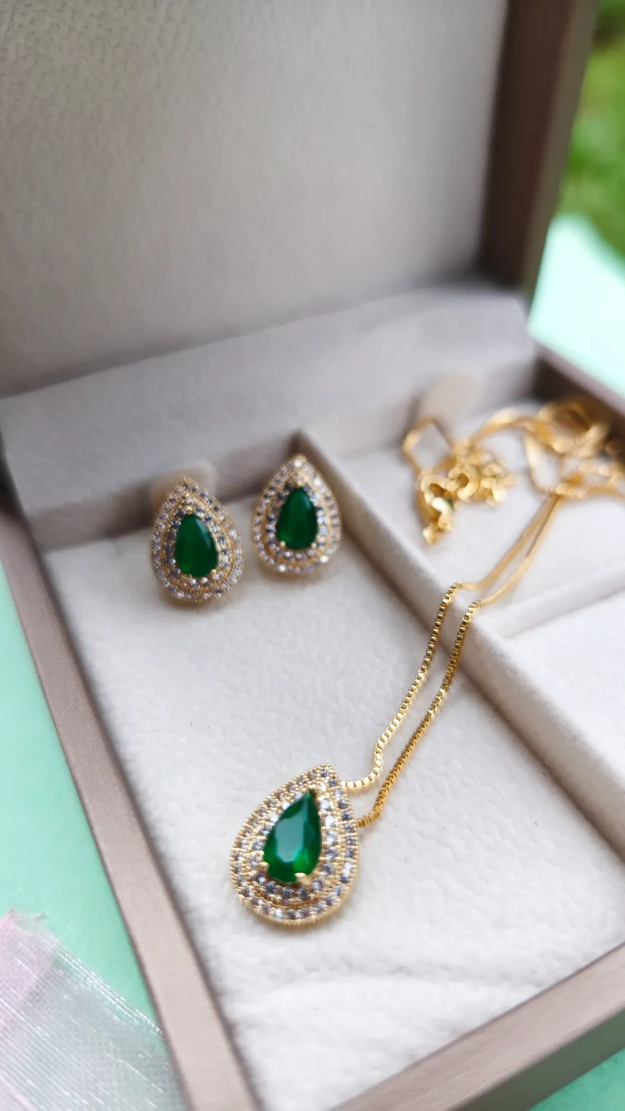 Conjunto Colar e Brinco Gota Cravejada