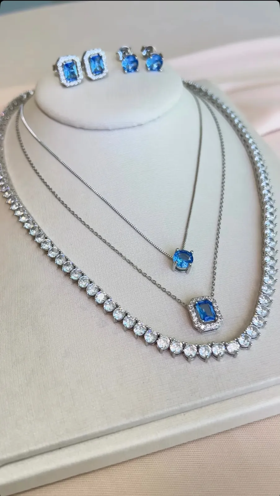 Conjunto Colar e Brinco Quadrado Turmalina Azul