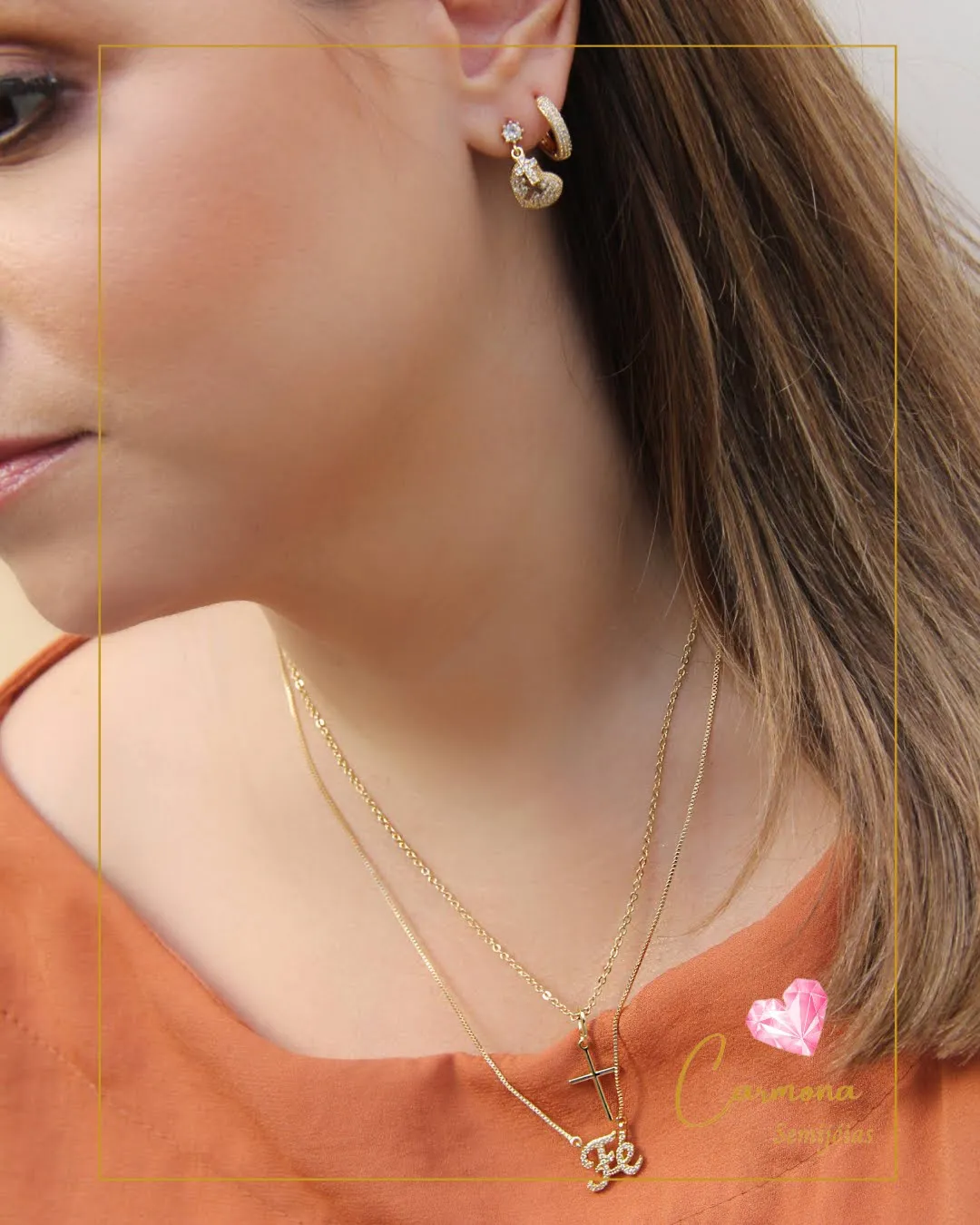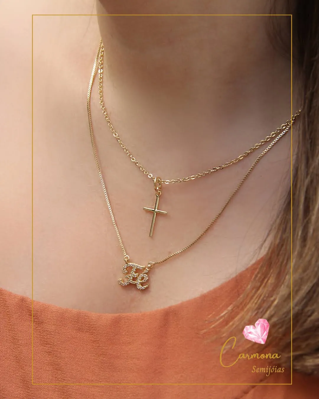 Colar Duplo com Pingentes Fé e Cruz