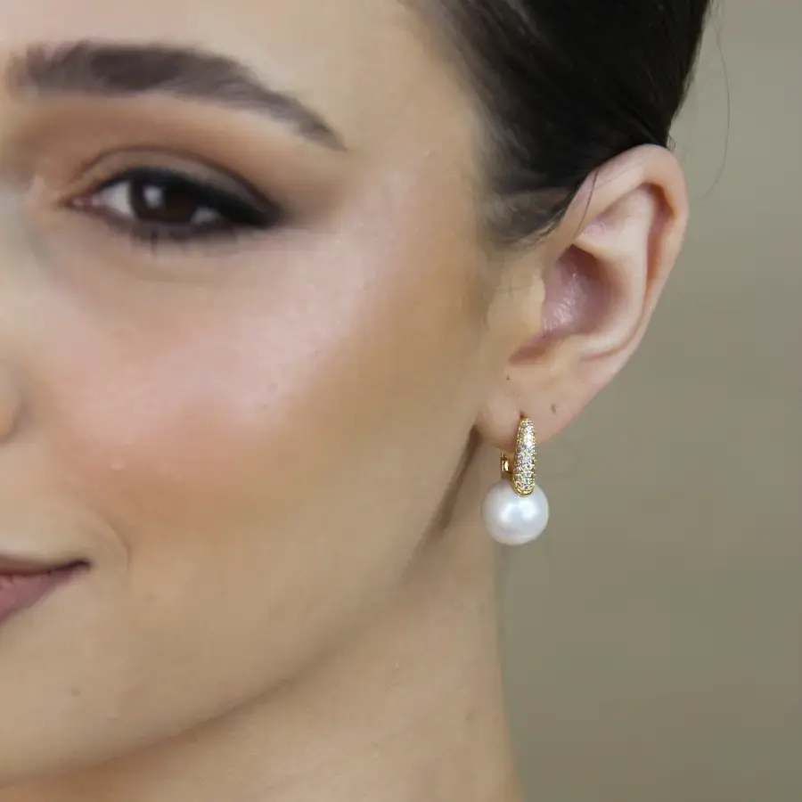 Brinco Click Pérola Cravejado