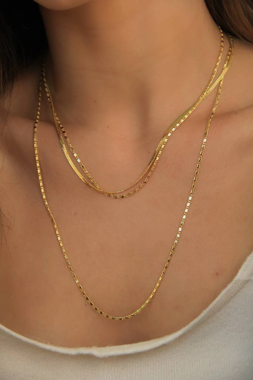 Colar em banho dourado com duas correntes delicadas que caem suavemente no colo, criando um look moderno e elegante. Elos polidos, acabamento suave e brilho sutil que realça qualquer decote. Leve, confortável e versátil, perfeito para usar sozinho ou em camadas com outras peças. Ideal para uso diário, ocasiões especiais ou presente para quem ama acessórios sofisticados.