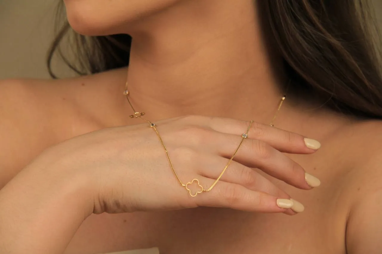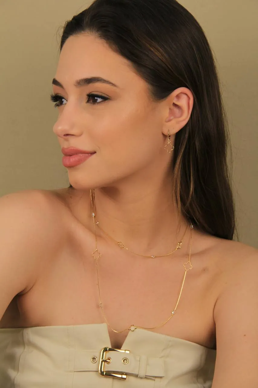 Conjunto Colar e Brinco Trevo Vazado: Elegância e delicadeza em um só acessório.