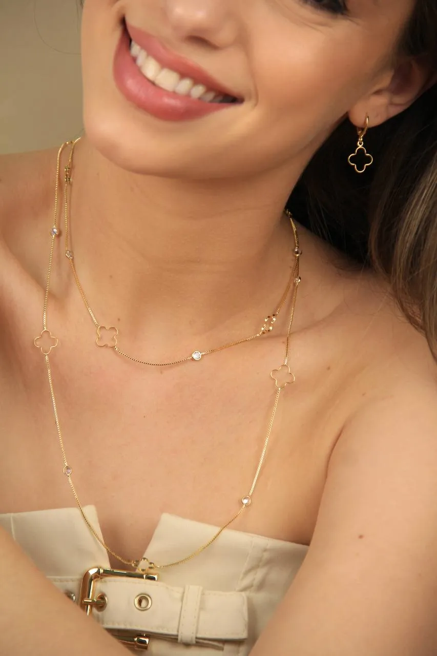 Conjunto Colar e Brinco Trevo Vazado