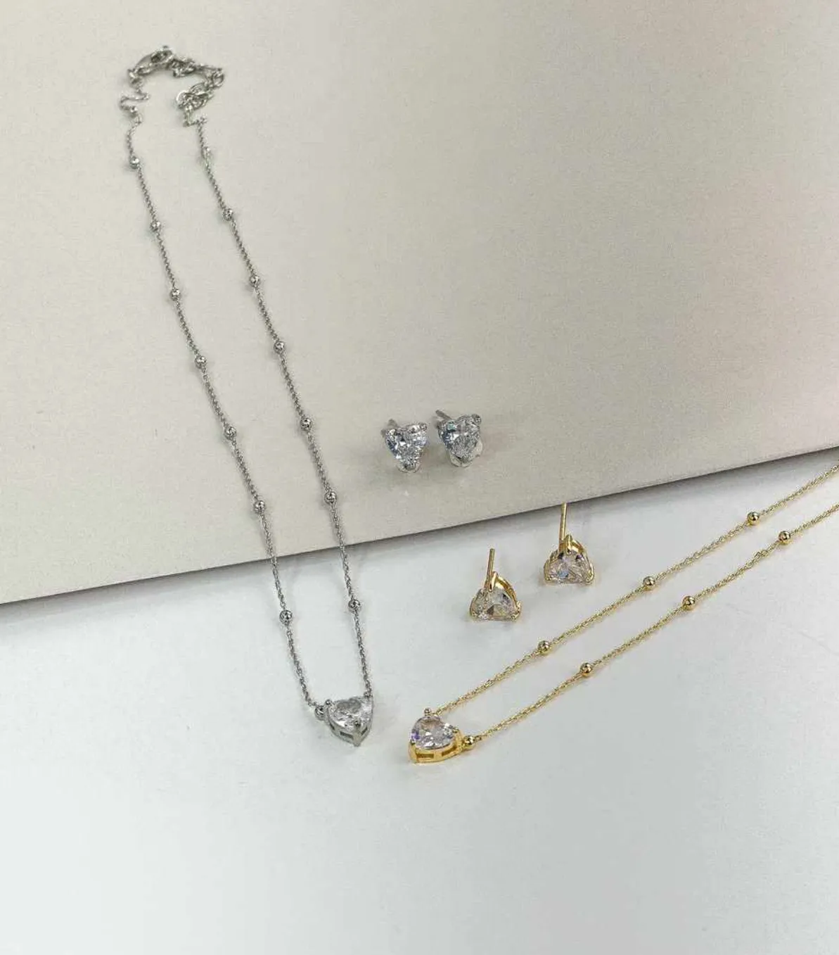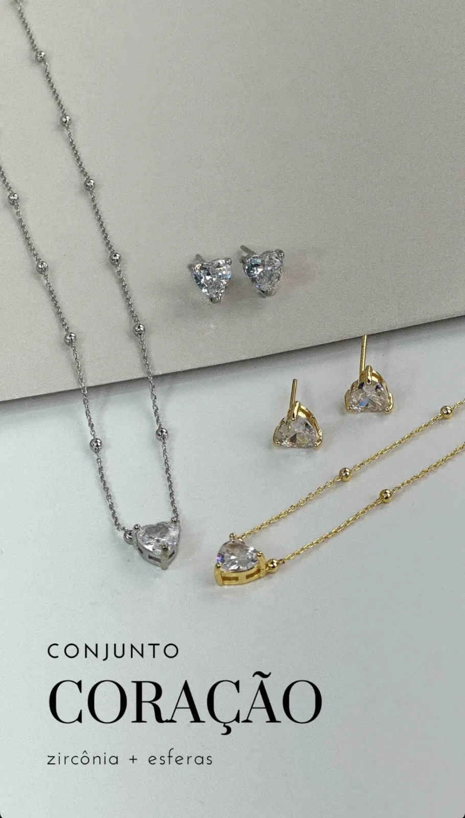 Conjunto Colar e Brinco Coração Cravejado